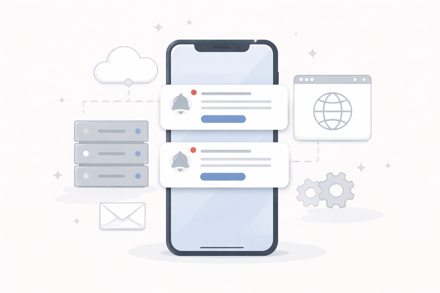 Les notifications ne partent pas directement du téléphone. Elles sont envoyées depuis un serveur, souvent déclenchées par un événement côté site : nouvel article, nouvelle commande, message, etc.